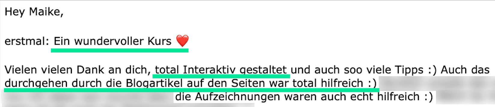 Mein letzter Blogbeitrag stieg mit Maike’s Tipps aus ihrem Blog direkt auf Platz 11 ein und befindet sich mittlerweile schon auf der ersten Seite von Google. Trotzdem habe ich bei den Schreibhelden von Maike teilgenommen, weil ich bis jetzt von allen ihren Kursen extrem profitieren konnte.